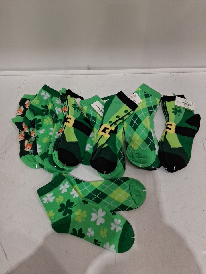 20PR UNISEX ST PATRICKS DAY DECORATIVE SOCKS - SIZES 9-11 -MULTICOLORED