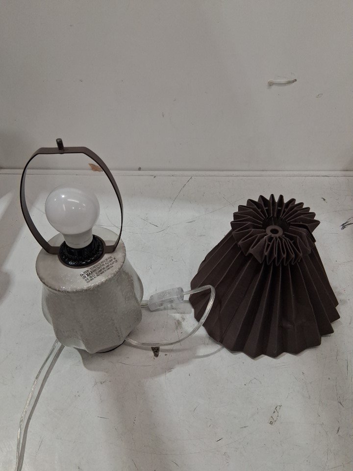 Hearth & Hand with Magnolia Ceramic Table Lamp with pleated lamp shade - 13" - cream/brown (model:txc35534)