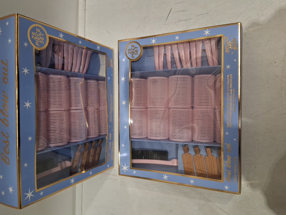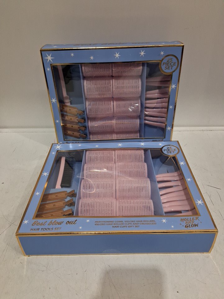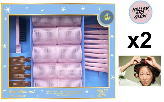 2 ( 25pc ) holler & glow Best Blow Out Tool Set Limited Edition Velcro Rollers - pink
