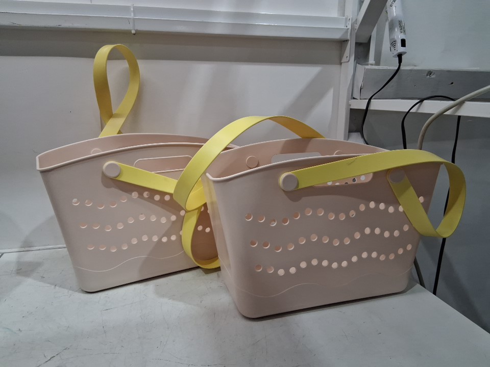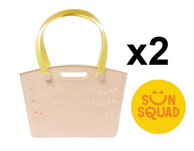 x2 Sun Squad waterproof plastic Summer Tote Bag - 21.88" x 18" x 7.5" - tan (model: 002 07 9153)