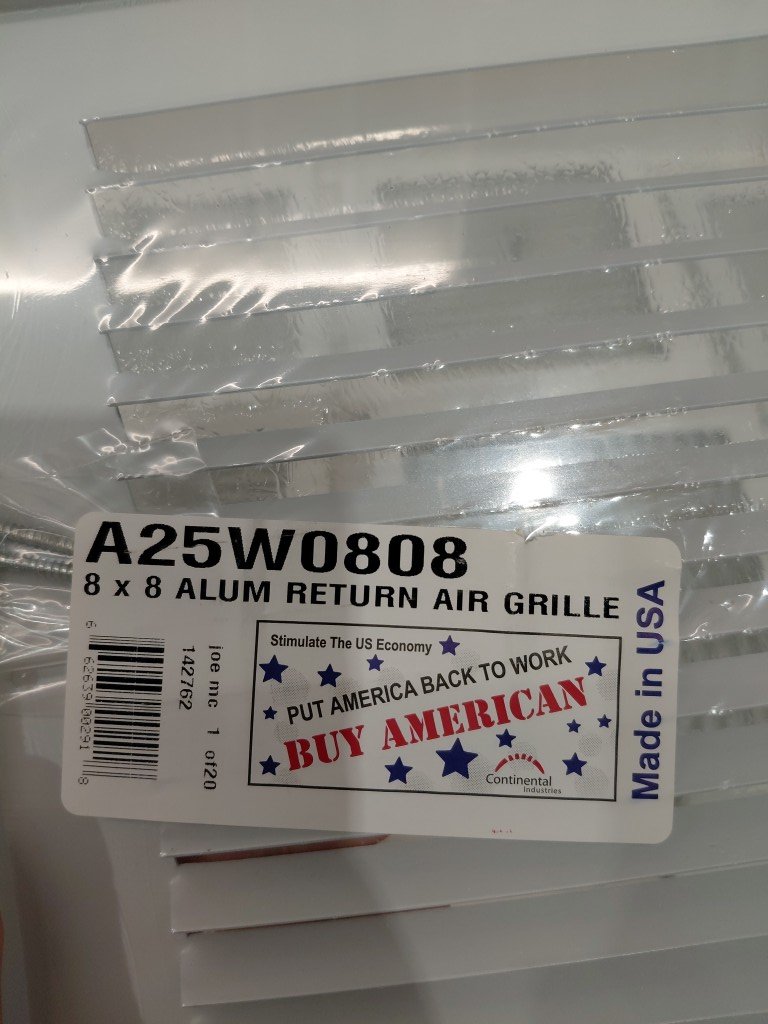 8PK return air grill cover - 8" x 8" - white (model: a25w0808)