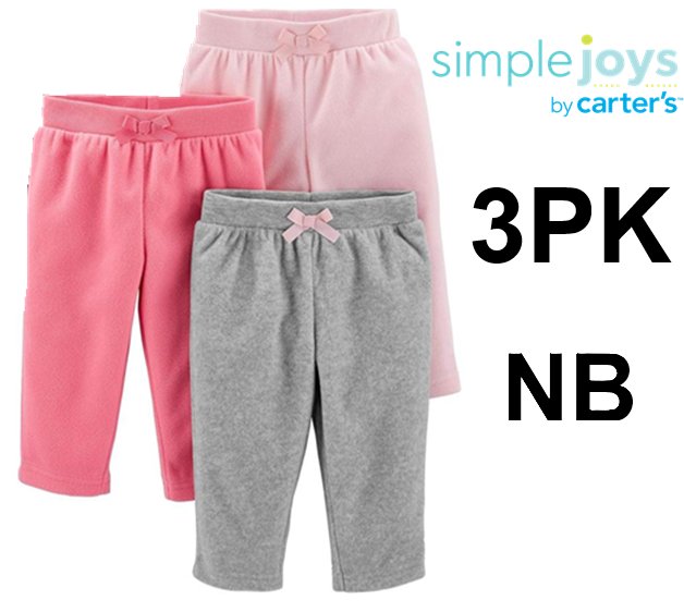 3PK Girl's Baby Simple Joys by Carter's Fleece Pants - Newborn - Pink/Hot Pink/Grey