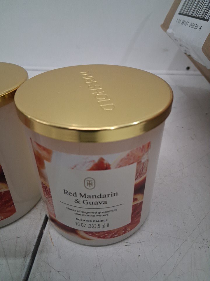 4PK threshold Lidded Glass Jar Candle 10oz - red mandarin & guava