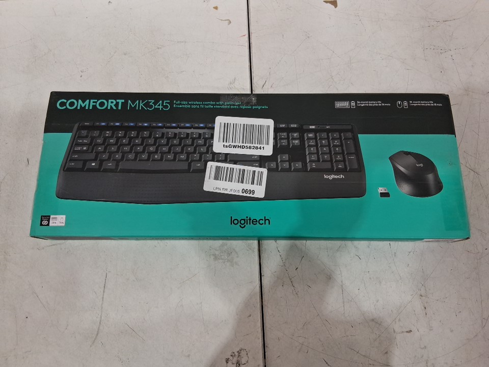 2PC LOGITECH COMFORT WIRELESS COMBO FULL SIZE KEYBOARD WITH MOUSE - BLACK (MODEL: MK345)