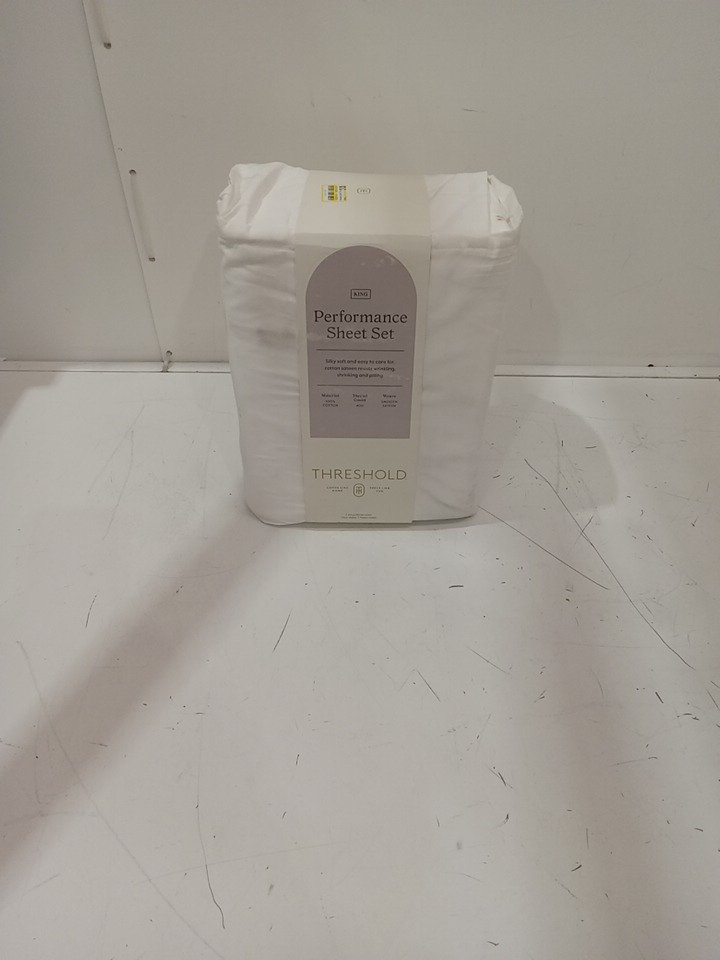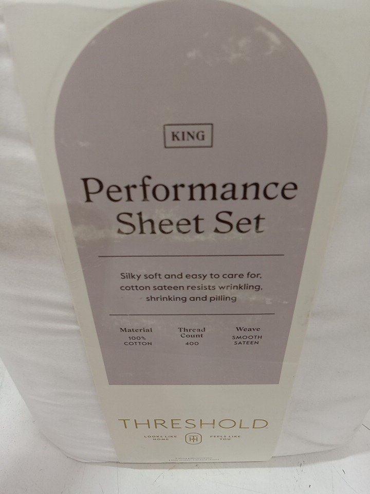 4pc Threshold 100% COTTON Performance 400 Thread Count Sheet Set - FLAT SHEET, FITTED SHEET, (2) PILLOW CASES KING - WHITE