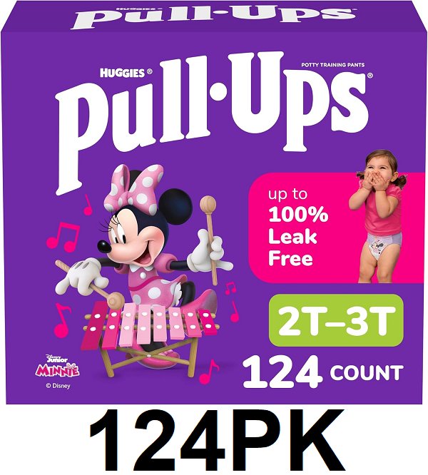 124pk girl's huggies pull-ups potty training pants diapers - 2t-3t - 16lb to 34lb - disney junior mickey mouse (MODEL:51593-05)