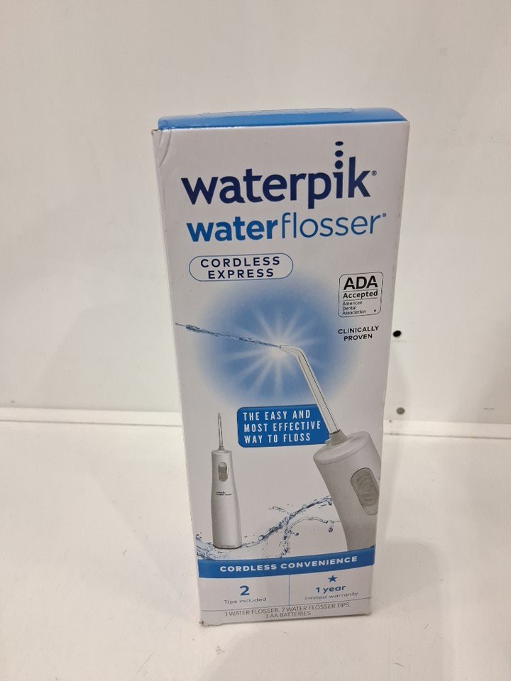 WATERPIK CORDLESS PLUS EXPRESS WATER FLOSSER - WHITE/GREY - (MODEL: WF-02c011)