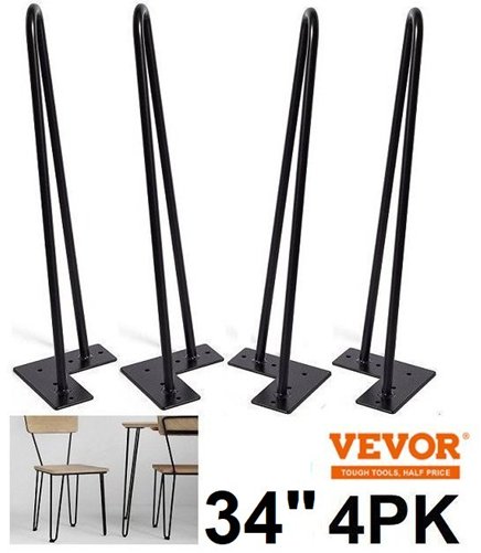4PK VEVOR DIY METAL FURNITURE HAIRPIN TABLE LEGS - 34" - BLACK (MODEL: tk6713-34)