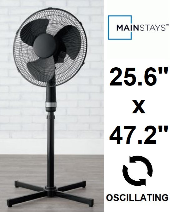 MAINSTAYS 3-SPEED Oscillating STANDING FAN - 25.6" x 47.2" - BLACK (MODEL: SF3-40E)
