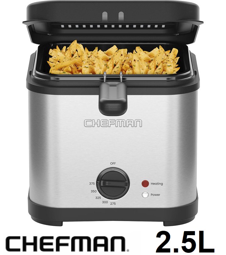 chefman fry guy mini deep fryer - 2.5l capacity - stainless steel (model: rj070-25-ss)