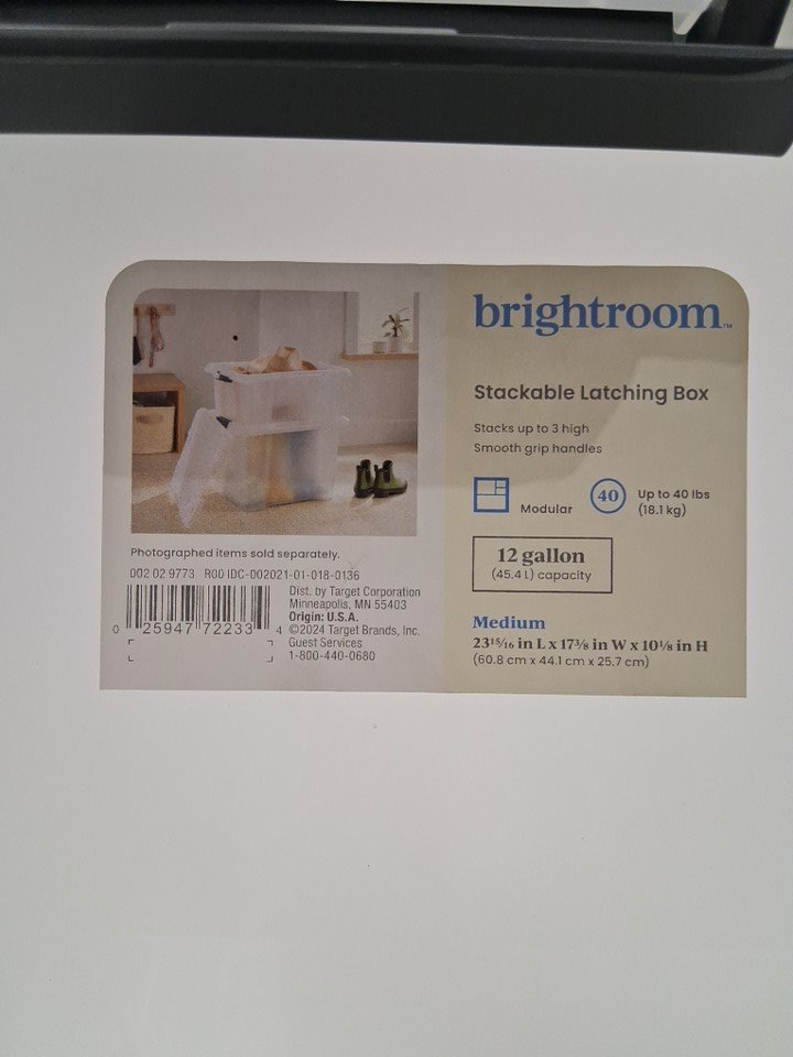 BRIGHTROOM Frosted Latching Storage Box - MEDIUM - 45.4LTR - 24.0" L x 17.42" W x 10.17" - WHITE