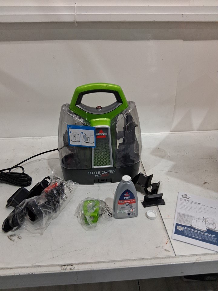 BISSELL LITTLE GREEN PROHEAT PORTABLE DEEP CLEANER/SPOT CLEANER WITH SELF-CLEANING HYDRORInSE TOOL - GREEN/GREY - (MODEL: 2513B / 2513n)