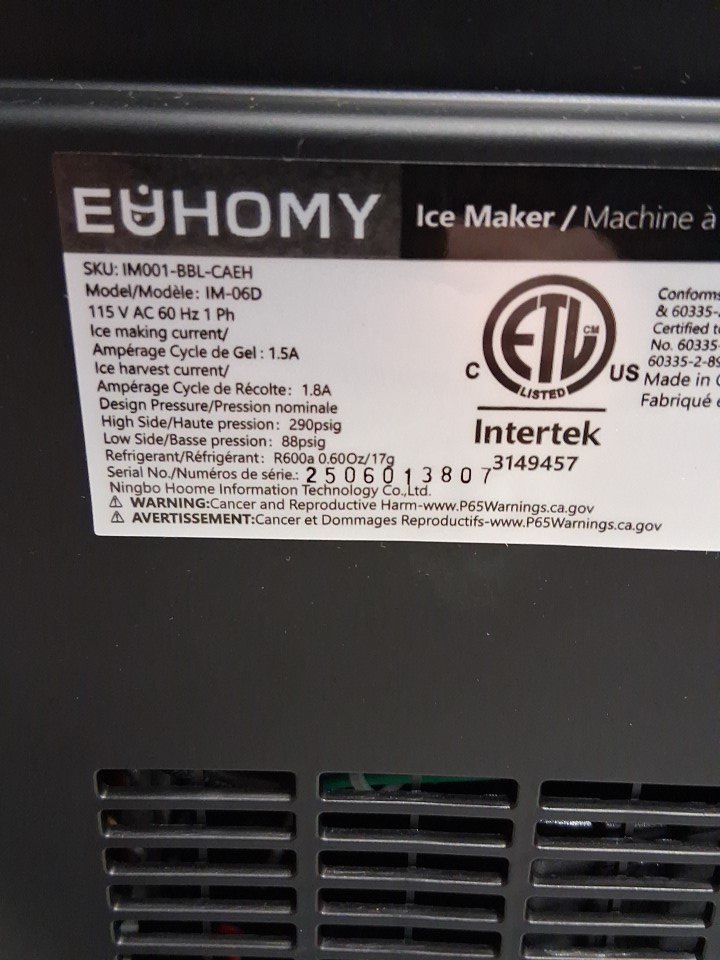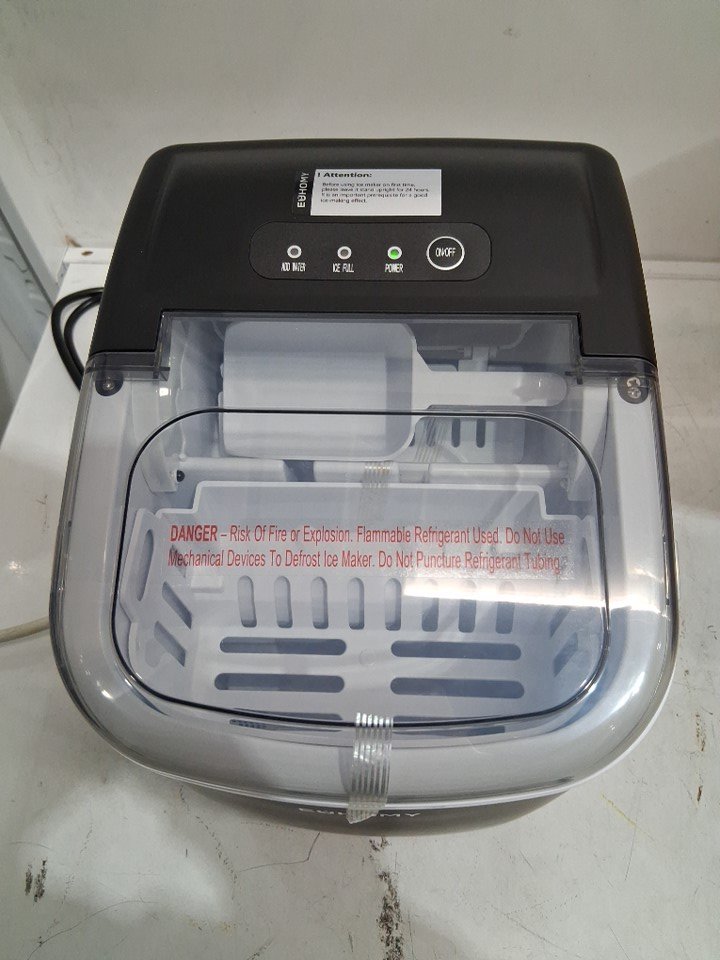 EUHOMY Countertop Ice Maker Machine with Handle, Basket and Scoop - MAKES 26LBS Per Day - BLACK - (MODEL:IM001-Bbl-CAEH)