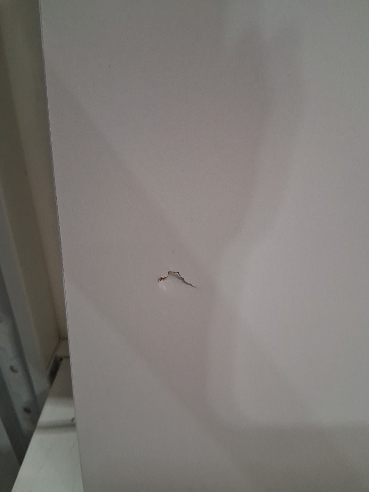 Please note that there is a dent on the inside of one of the side panels, but it otherwise appears new (see photos)