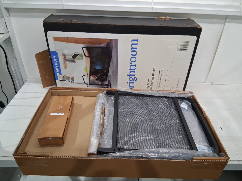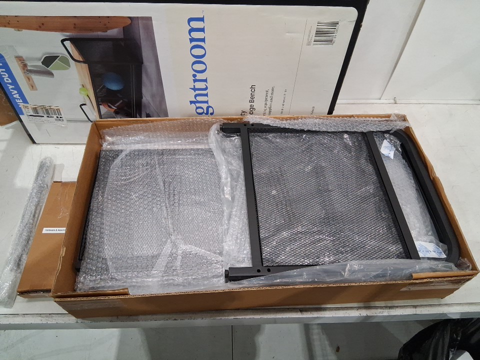 brightroom metal storage bench - 21.25 " x 35.75" x 18.25" - 200lb capacity - black/wood (model: 002-04-1879)