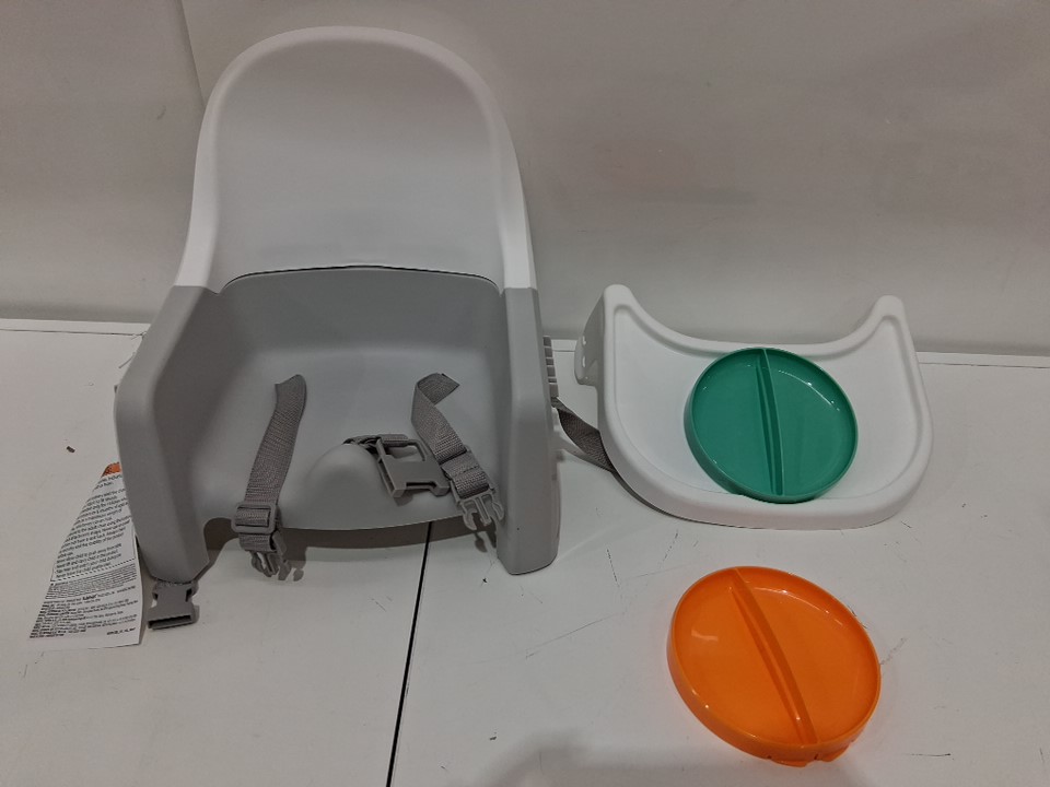 babies ingenuity summer deluxe learn to dine feeding seat with interlocking plates - 6-36 months - white/grey/orange/blue (model: 12940)