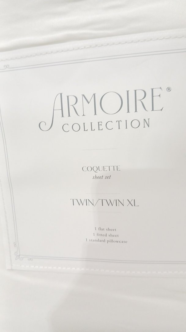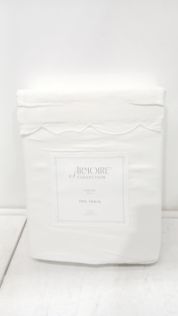3PC Armoire Collection Scalloped COQUETTE Sheets Sets - Twin/Twin XL - White