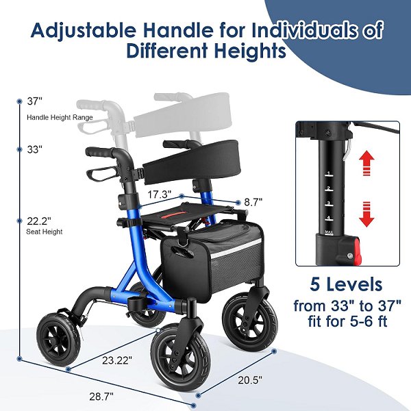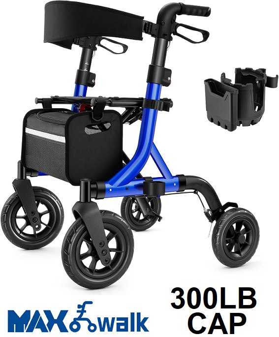 MAXWALK All-Terrain rollator walker with backrest - 300LB Cap - Blue
