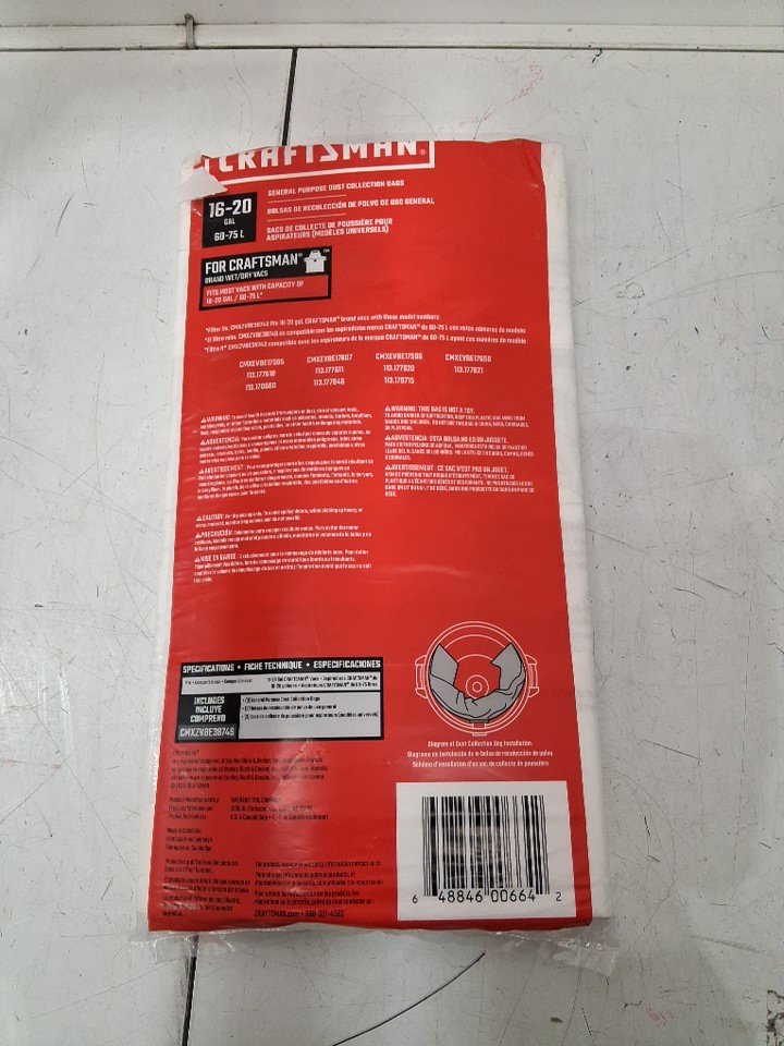 CRAFTSMAN General Purpose Dust Collection Bags - 16-20 GALLON - (MODEL: CMXZVBE38749)