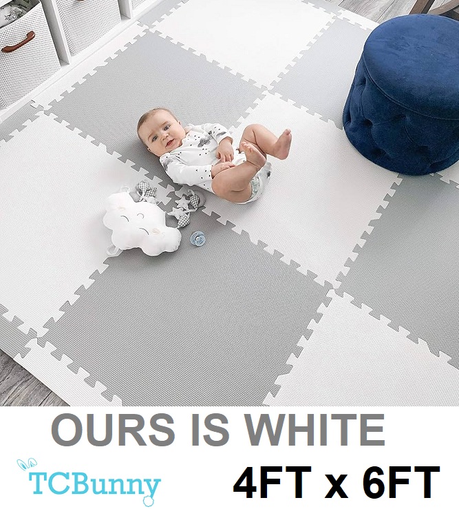 TCBunny Interlocking Foam Puzzle Baby Play Mat - Extra Large (4ft x 6ft) - White