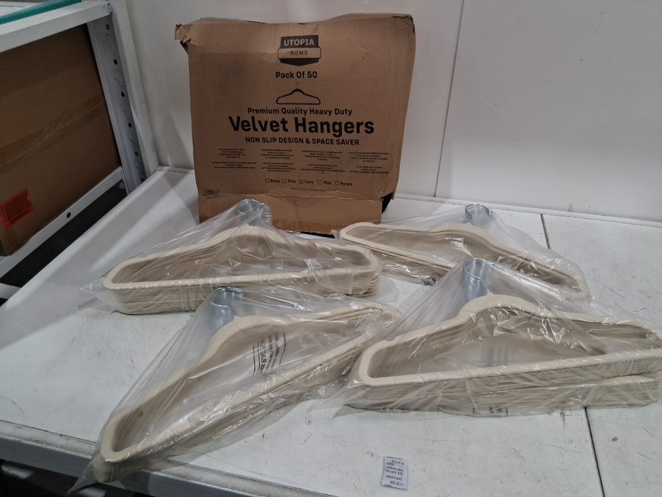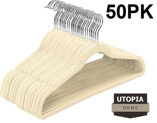 50PK UTOPIA HOME PREMIUM DURABLE SLIM NON SLIP VELVET SOFT HANGERS - IVORY