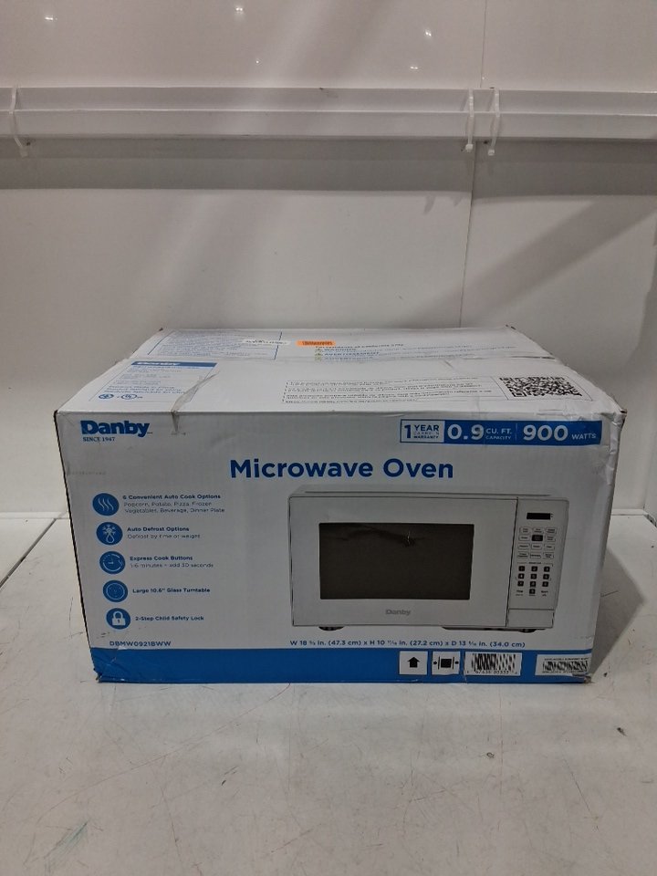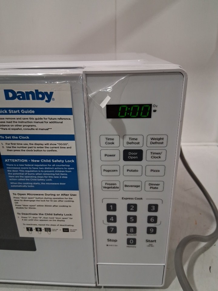 danby countertop microwave oven with locking door - 0.9cu/ft - white (model: dbmw0921bww)