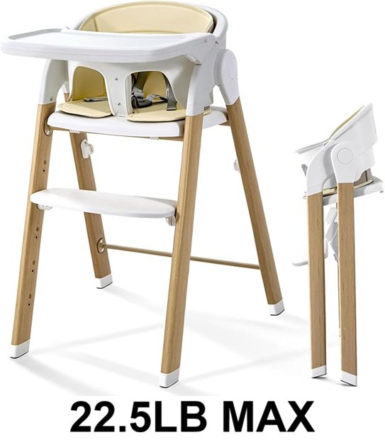 Multi-High Chair With Adjustable Footrest - 22.5LB Max - White/Brown (Model: JBG009-3)