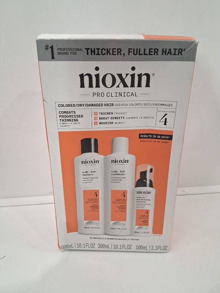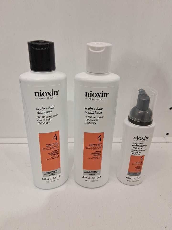 3PC NIOXIN 4 3-STEP CARE TREATMENT FOR NATURAL, PROGRESSED THINING CHEMICALLY TREATED HAIR - 300ML SHAMPOO; 300ML CONDITIONER; 100ML SCALP TREATMENT - COLOR SAFE