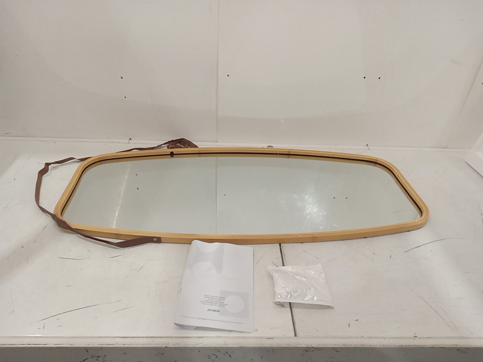 costway modern wall mirror with bamboo frame - 39" x 18" - brown (model: jv10634na)