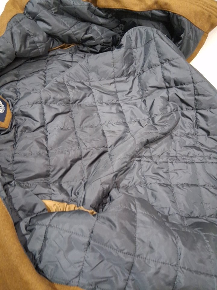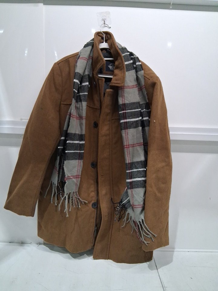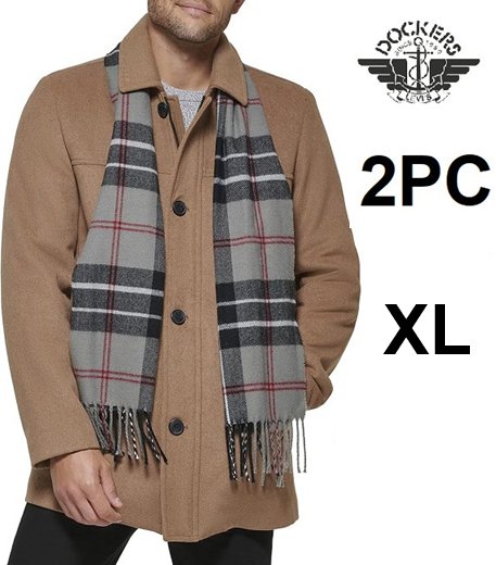 2pc men's Dockers Weston Wool Blend Scarf Coat - extra large - CAMEL BROWN/ light grey scarf -(model: DM6RP357)