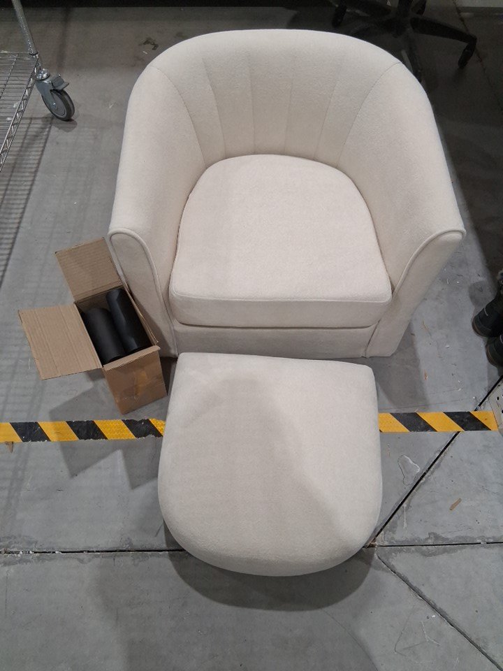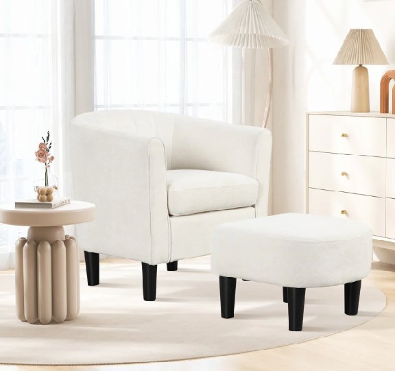 Upholstered Teddy Velvet Barrel Chair with Ottoman - 350LB MAX - cream/beige (Model: HV10669be)