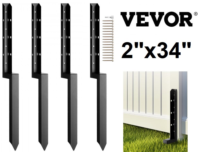 vevor heavy durt fence post anchor ground spike repair kit - 34"x2" - black (model: wgf-2-34-4)