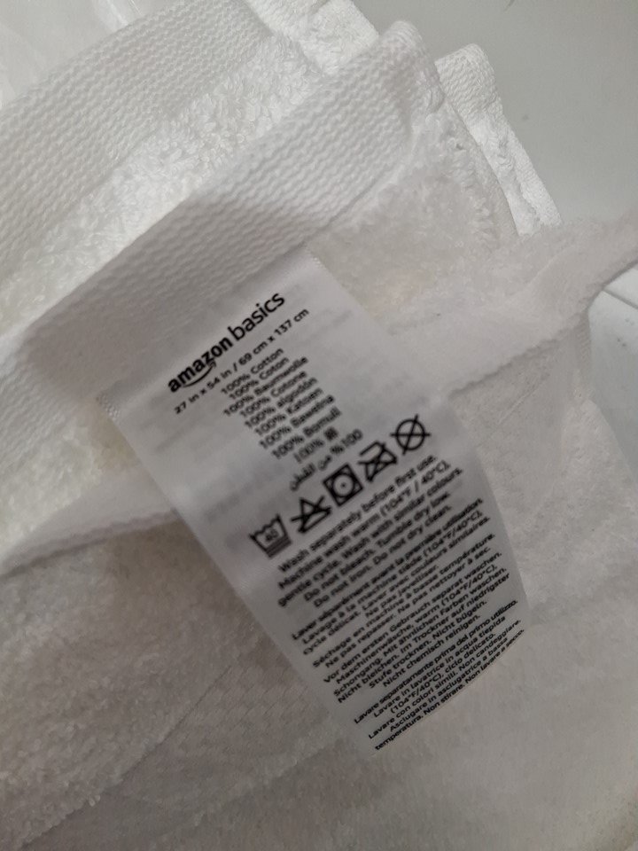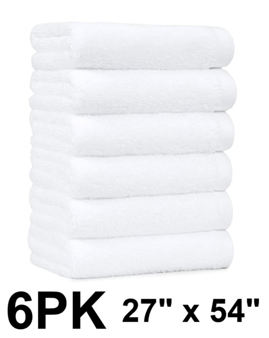 6PK Amazon Basics Cotton Hand Towels - 27'' x 54'' - White
