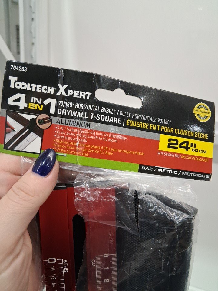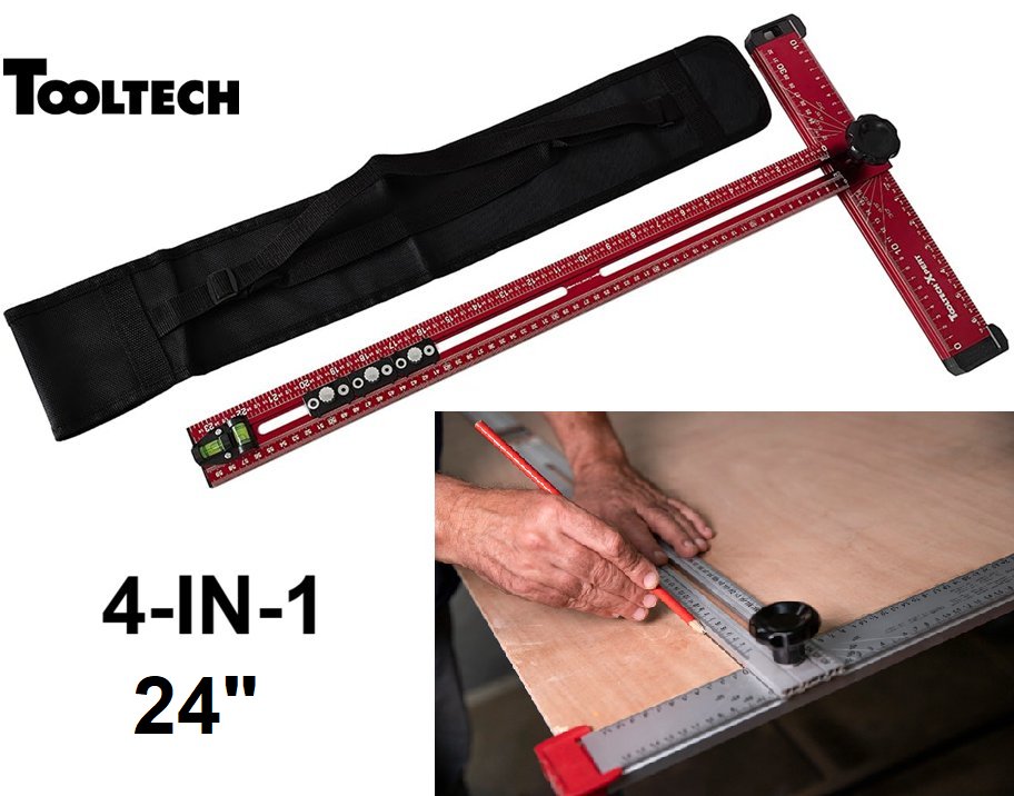 Tooltech Xpert 4-in-1 Drywall Aluminum T-Square with Storage Bag - 24"- red/black