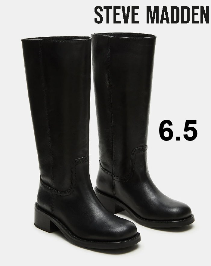 WOMEN'S STEVE MADDEN RIGGS LEATHER BOOT - SIZE 6.5 - BLACK (STYLE: RIGG03S1)