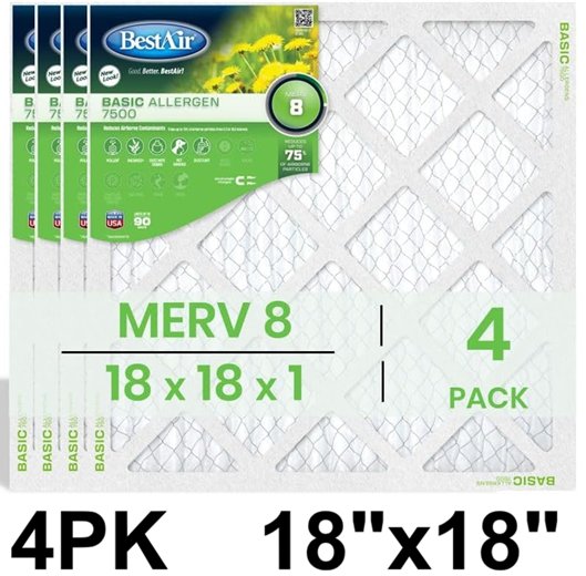 4pk BestAir Replacement Air Filter - 18"x18"x1"