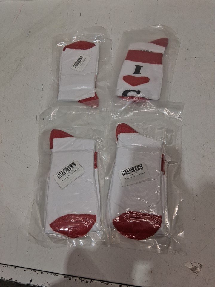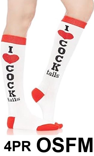 4PR Knee High Socks with Three-Bar Design " I HEART COCK TAILS" SOCKS - OSFM- RED/WHITE