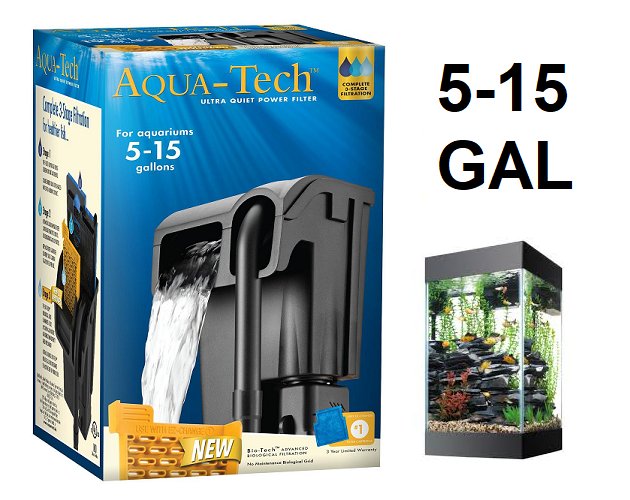 Aqua-tech ultra quiet power fish tank filter - 5-15 gallons (model: pl-t0515fc)
