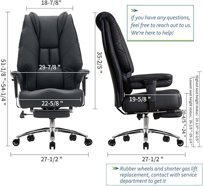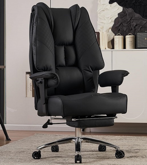 Excebet High Back Executive Office Chair with Foot Rest - faux leather - black (model: lk-3043)