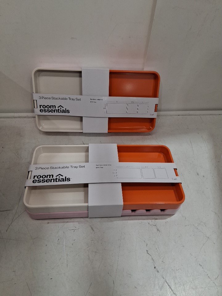 2 (3pc) room essentials bamboo Melamine Decorative stackable Tray set- Rose Pink/white/orange