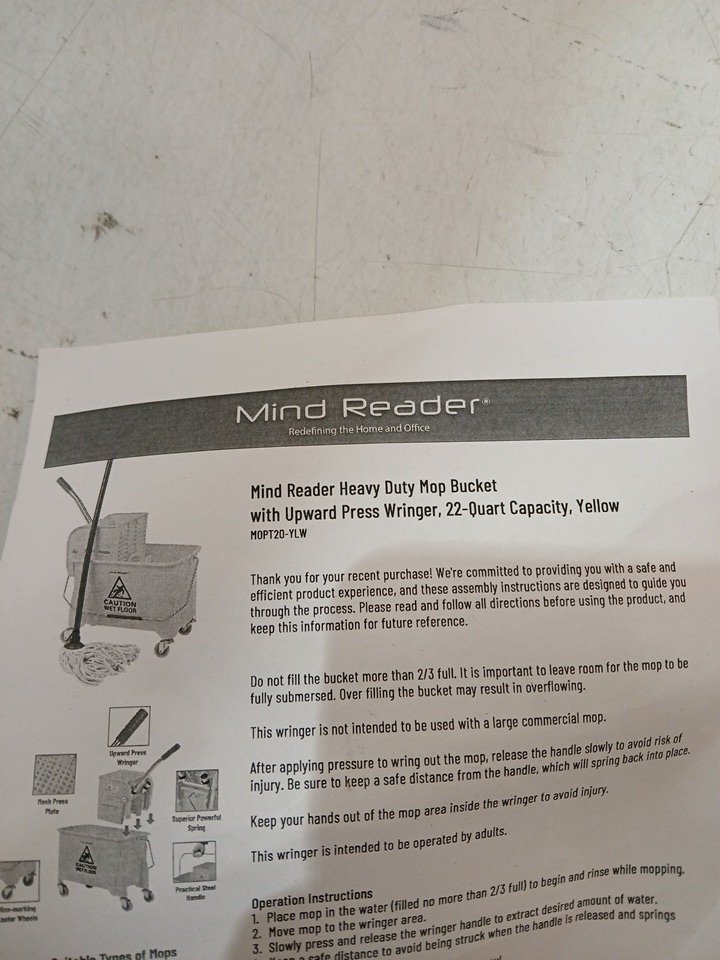 MINDREADER PROFESSIONAL COMMERCIAL WRINGER MOP BUCKET - 20L - YELLOW (MODEL: MOPT20-YLW)
