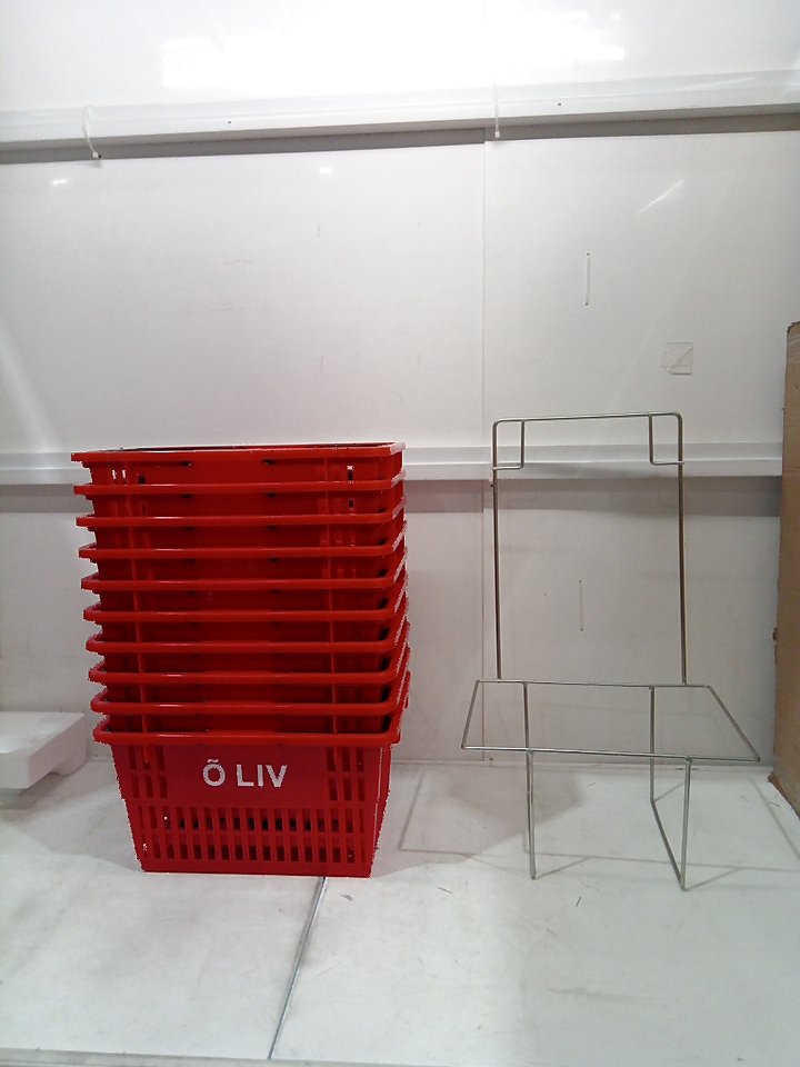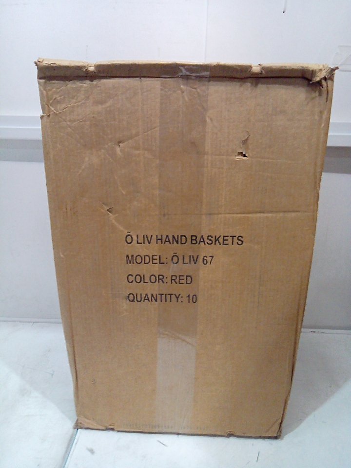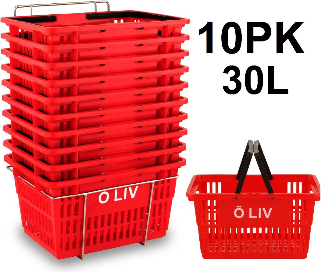 10PK OLIV SHOPPING BASKETS - 30L - COMMERICAL STACKABLE GROCERY CART BASKETS FOR SUPERMARKET, RETAIL STORE - RED