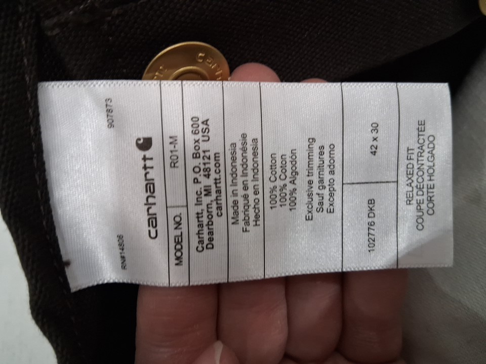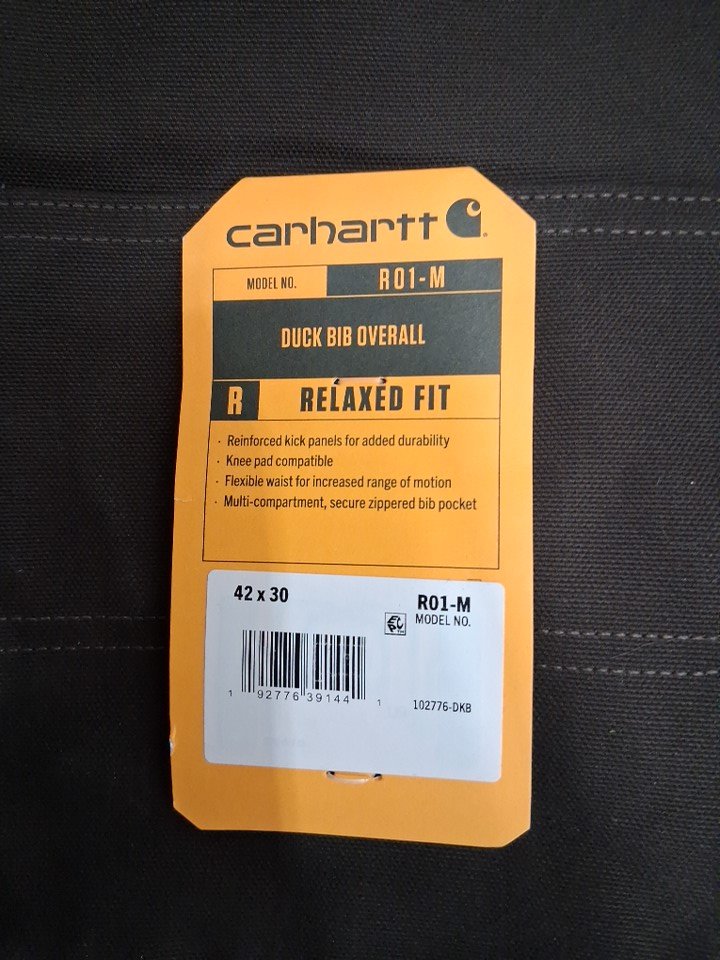 MEN'S CARHARTT RELAXED-FIT DUCK BIB OVERALL - 42w x 30L - dark brown (STYLE: R01-M)