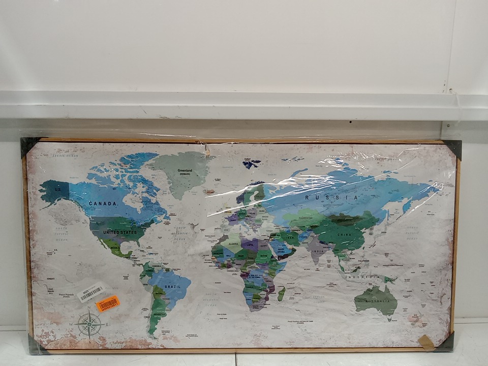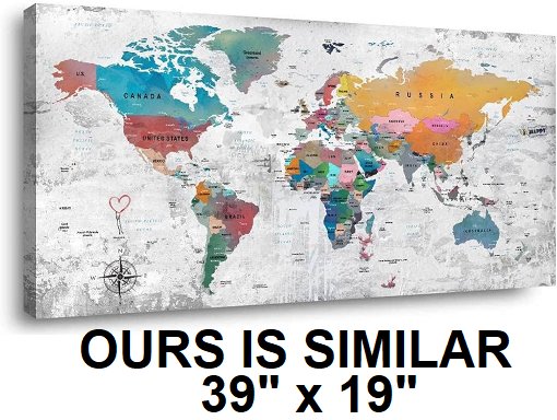 Abstract Decor World Map Canvas Wall Art with wooden frame - 39" x 19"