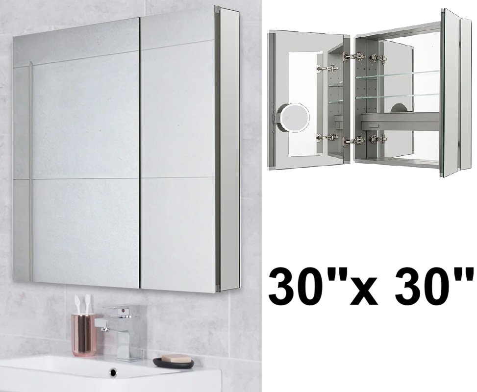 aquadam royale double door Medicine Cabinet - 30" x 30" - white (model: r-3030e)