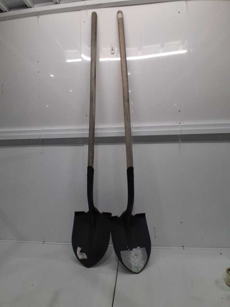 appears they sat outside as there is weather wear & tear on the shovels as well as come surface rust.