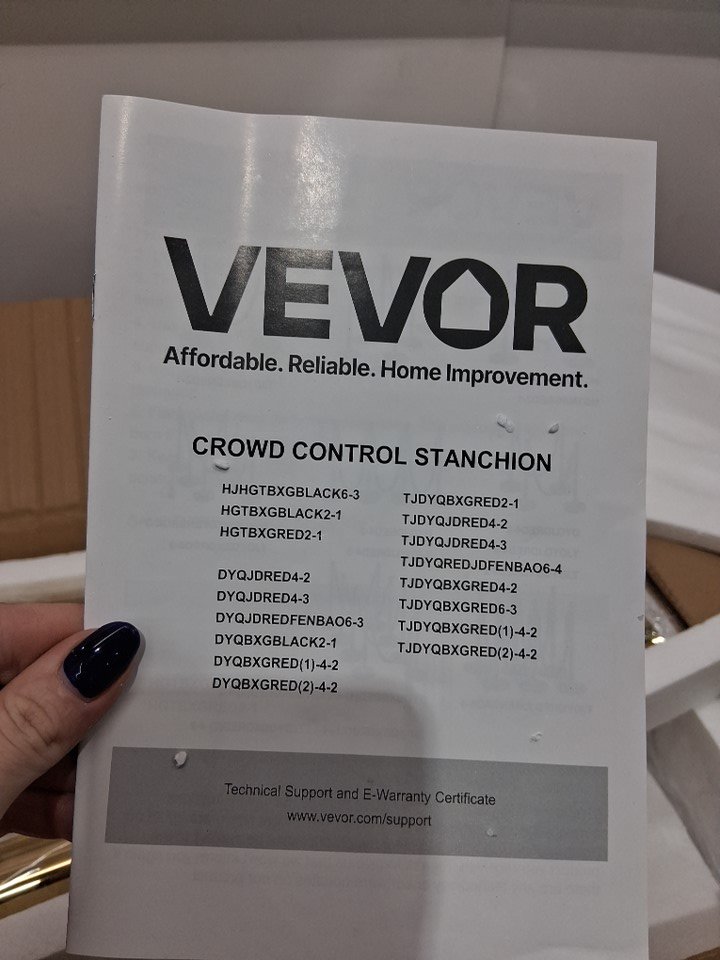 4PK VEVOR STAINLESS STEEL STANCHION POST QUEUE WITH RED VELVET ROPES - 38" ROPE BARRIERS - GOLD/RED