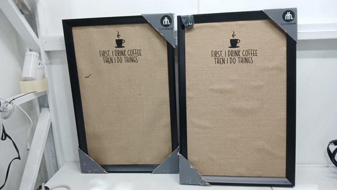 please note there is a large black marking on one of the canvas' as well as the back sides of both are ripped
