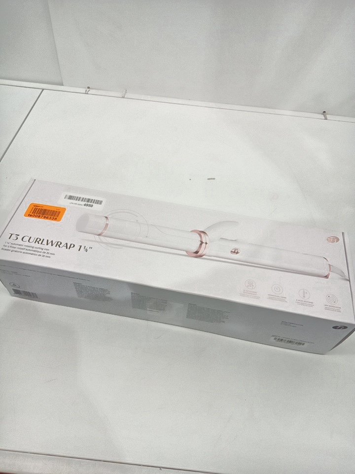 t3 curlwrap automatic rotating curling iron with long barrel (5.5"l) - timer settings and 9 heat settings - 1.25" - white/rose gold - (model: 76680).