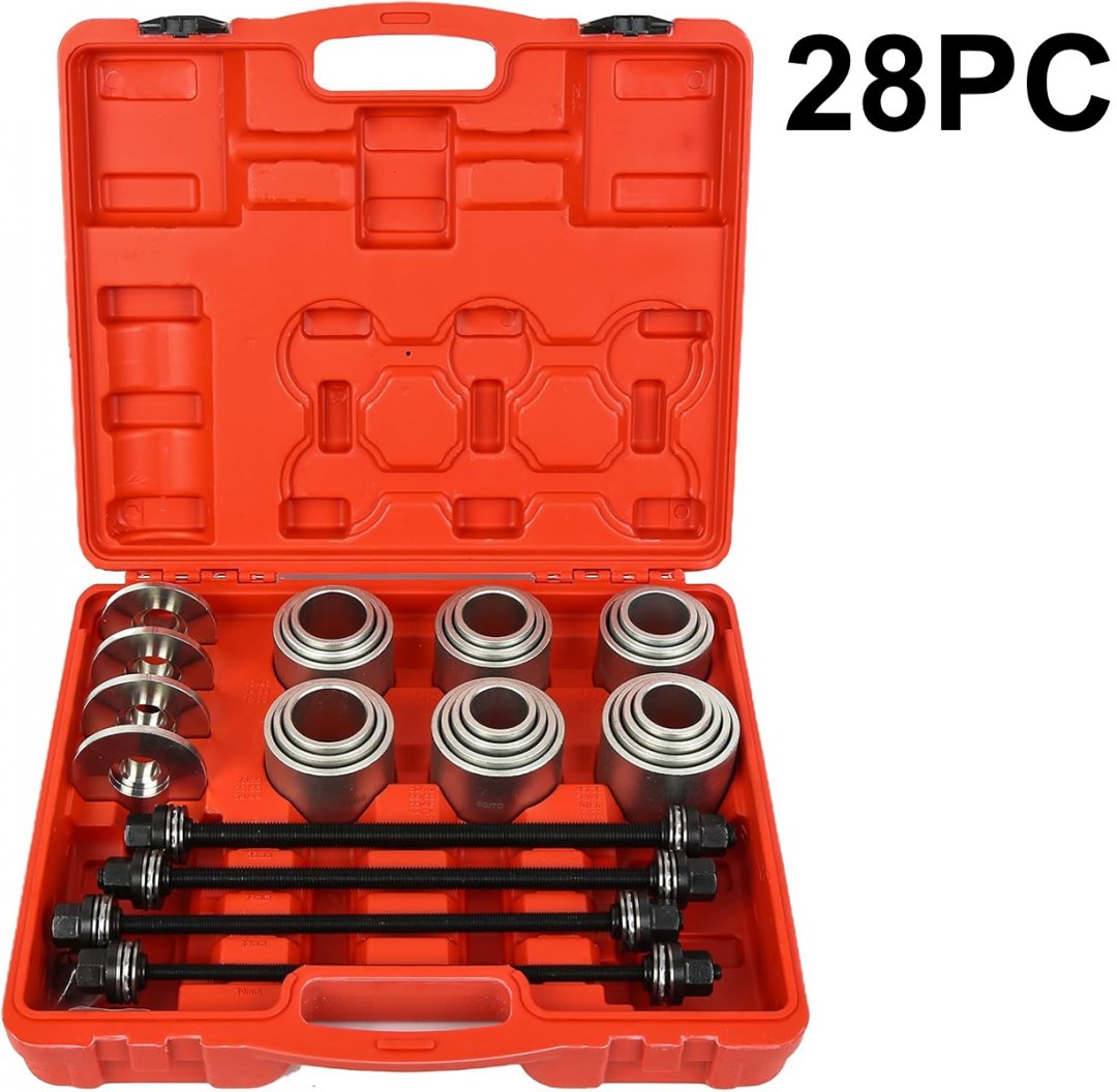 28PC Pull and Press Sleeve Kit Steel Bush Bearing Removal and Installation Set - red/silver/black